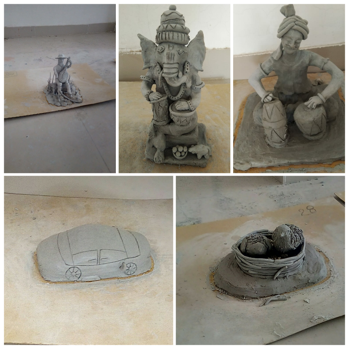 Installation the idea itself the progressive way of giving a message by using useless things. In this, it gives the message of cleanliness, traditional musical instruments, religion and traditional festival celebration like Navratri..etc.
